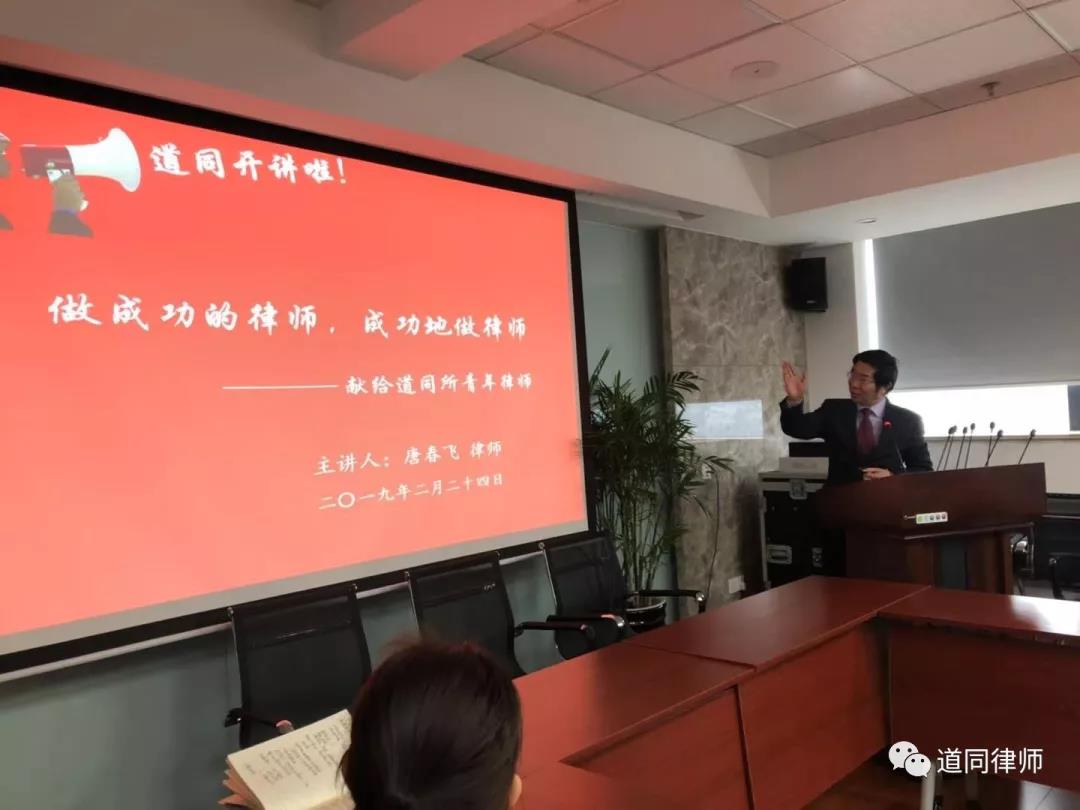 2月24日,道同律师事务所举办以“做成功的律师,成功地做律师”为主题青年律师沙龙,唐春飞律师作为主讲人对全所青年律师进行经验传授。